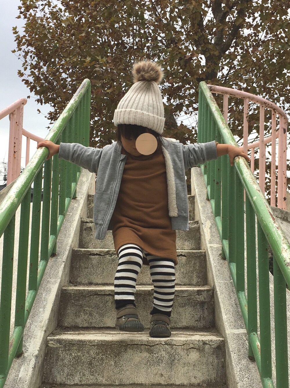 今日の公園コーデ❤️ あおさん、常に小走りなので、 つまづくと大抵転ぶ😂 今日も公園に着いて数分で転んで 膝が砂です😅 「走るから転ぶんだよ!」と教えてますが、 外でも家でも走ります😱 走りたいからか、 手を繋いで歩くのがとても苦手です😭