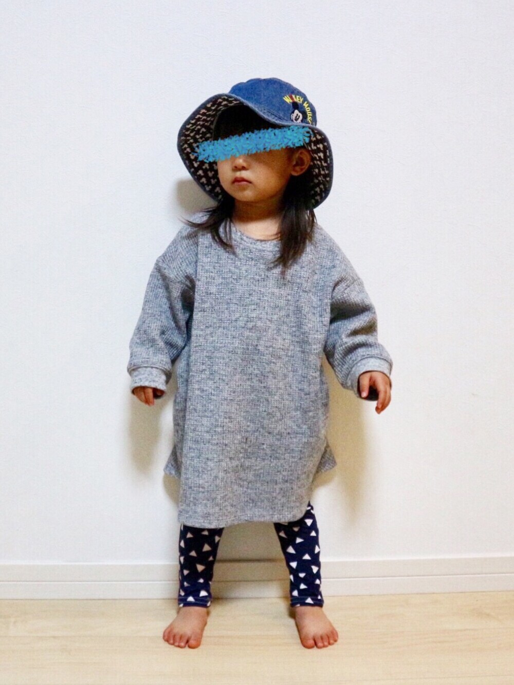 ユニクロのワッフルTシャツ‼️ 500円だったの😍 5分袖ってどんなん?と思いながら 130を買ったらいい感じの長袖😂