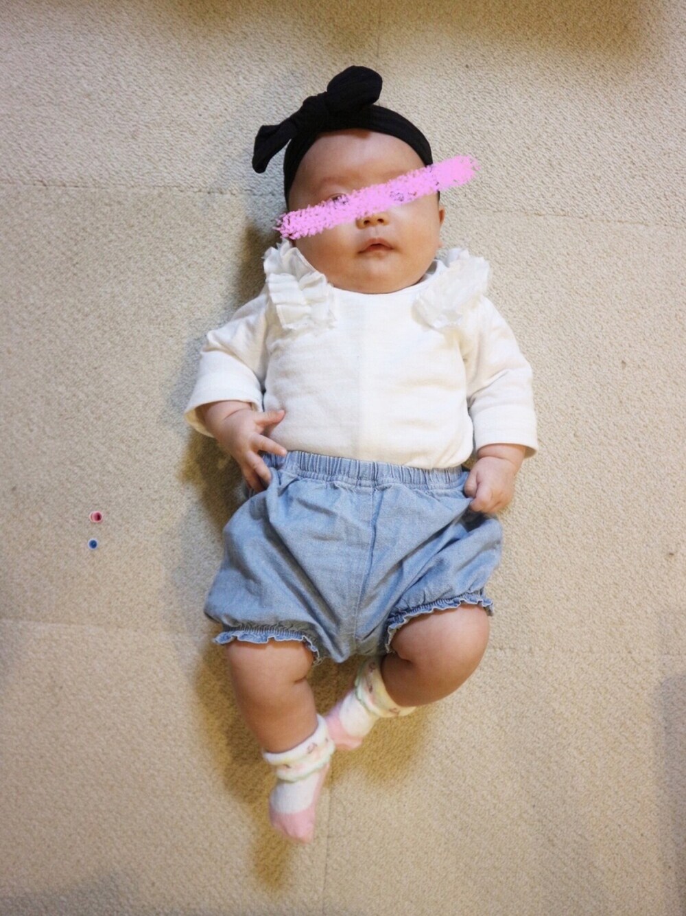 靴下は保険屋さんが出産祝いにくれたやつ🧦 あとはおさがり👧 このロンパース買ってもらって気に入ってて あおの時、たくさん着せてたの‼️ やっと涼しくなって着せてみたら 既にぴったり😱 なつはまだ3ヶ月だけど、 あおより大きめだから、 あおが4ヶ月の頃のがぴったりなの。 特にお腹周り。 たくさんある冬用のツーウェイオールは 既に足がつんつるてん😑 季節が真逆だと、おさがり事情か結構厳しいわ😩