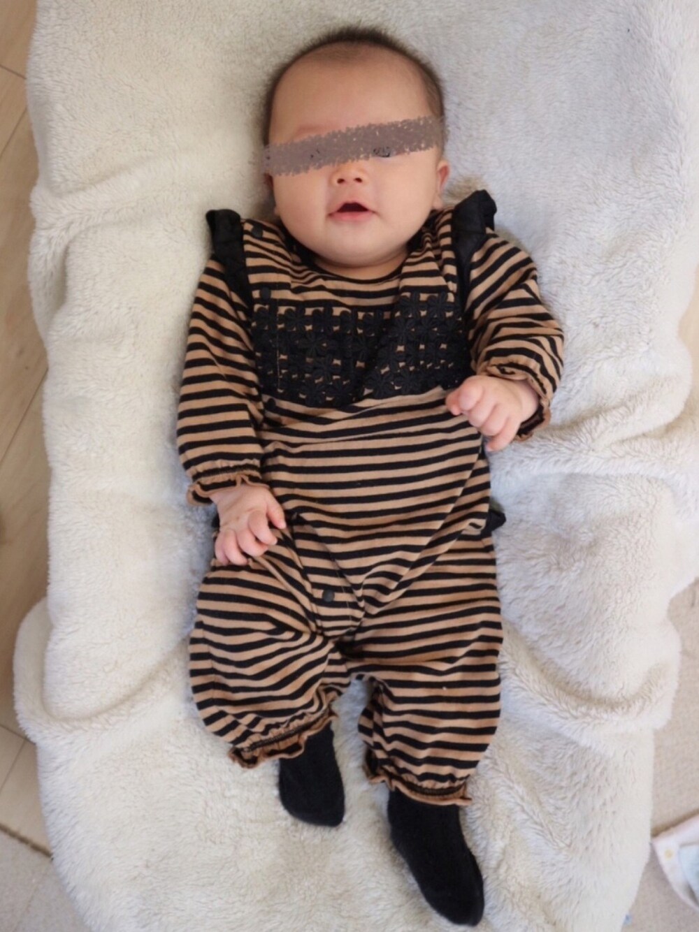 軽井沢アウトレットでの戦利品‼️ 570円だったのでつい😂 でも、買って正解‼️ 今年の冬はあおのお下りのカバーオールで行けると思っていたら、夏葉は大きくて、 冬用のカバーオールのほとんどは7分袖&5分丈状態😭