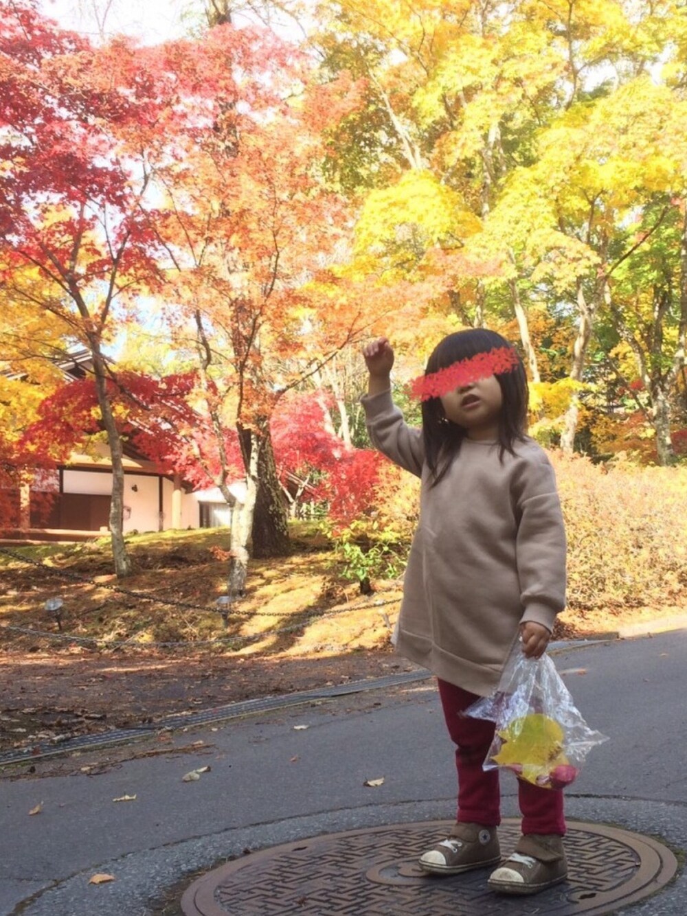 軽井沢1日目コーデありました。 パパが撮ってました‼️ 軽井沢は住んでるとこよりマイナス5度くらいの気温なので 上下裏起毛で言ったら、天気の良い昼間はアウターいらずでした😁 紅葉が綺麗だ🍁