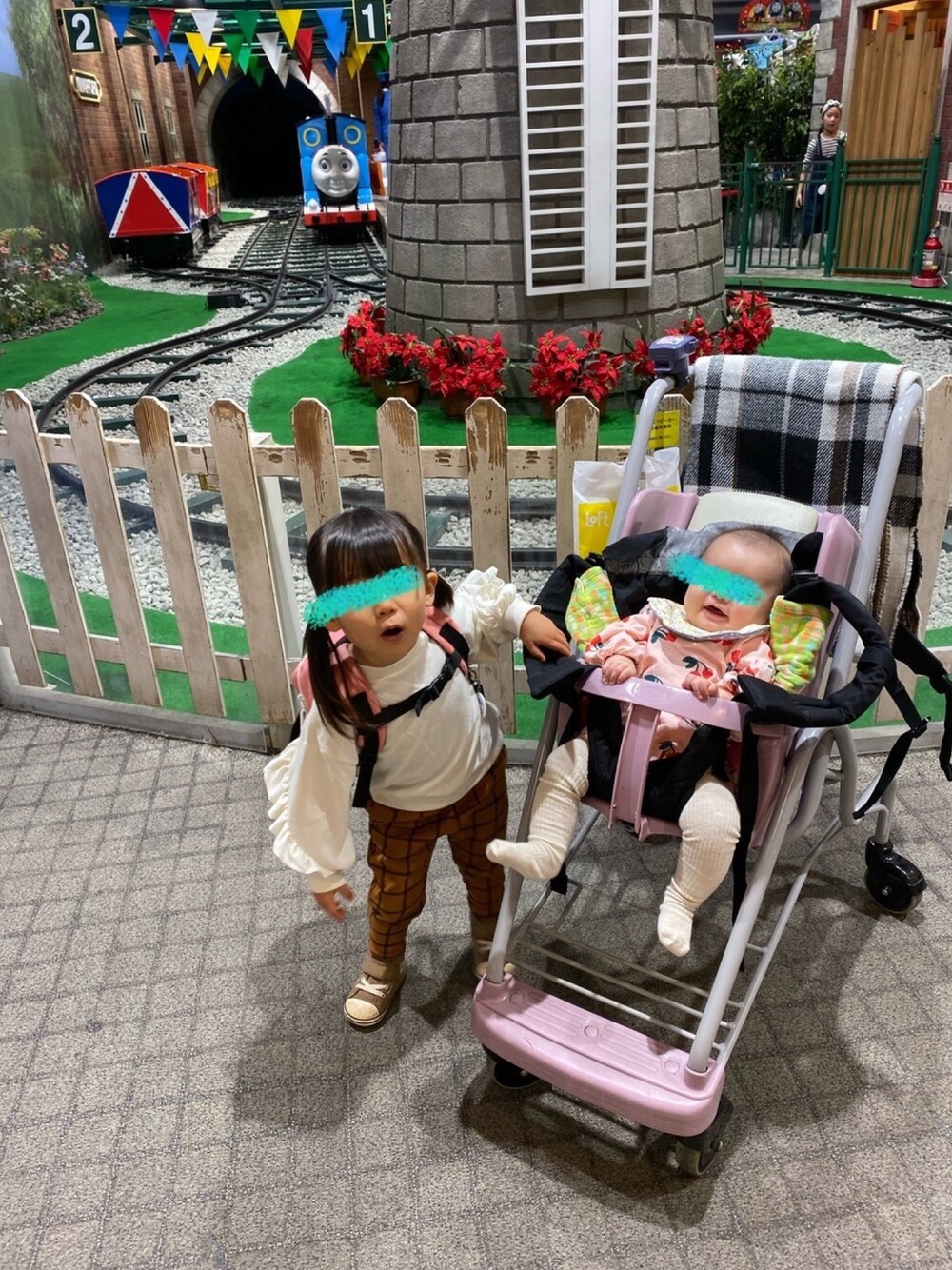 またまた撮り溜めコーデ。 なつが4ヶ月を迎えておんぶ出来るようになったので、自転車で出かける事が多くなりました。 近くのららぽーとでは貸し出しのベビーカーデビュー‼️ でも、この手のベビーカー、振動が直で伝わるから、ガタガタしてる床の上を通るのは申し訳なくなる😭 6ヶ月過ぎたらポキット使えるから、それまでの辛抱😫