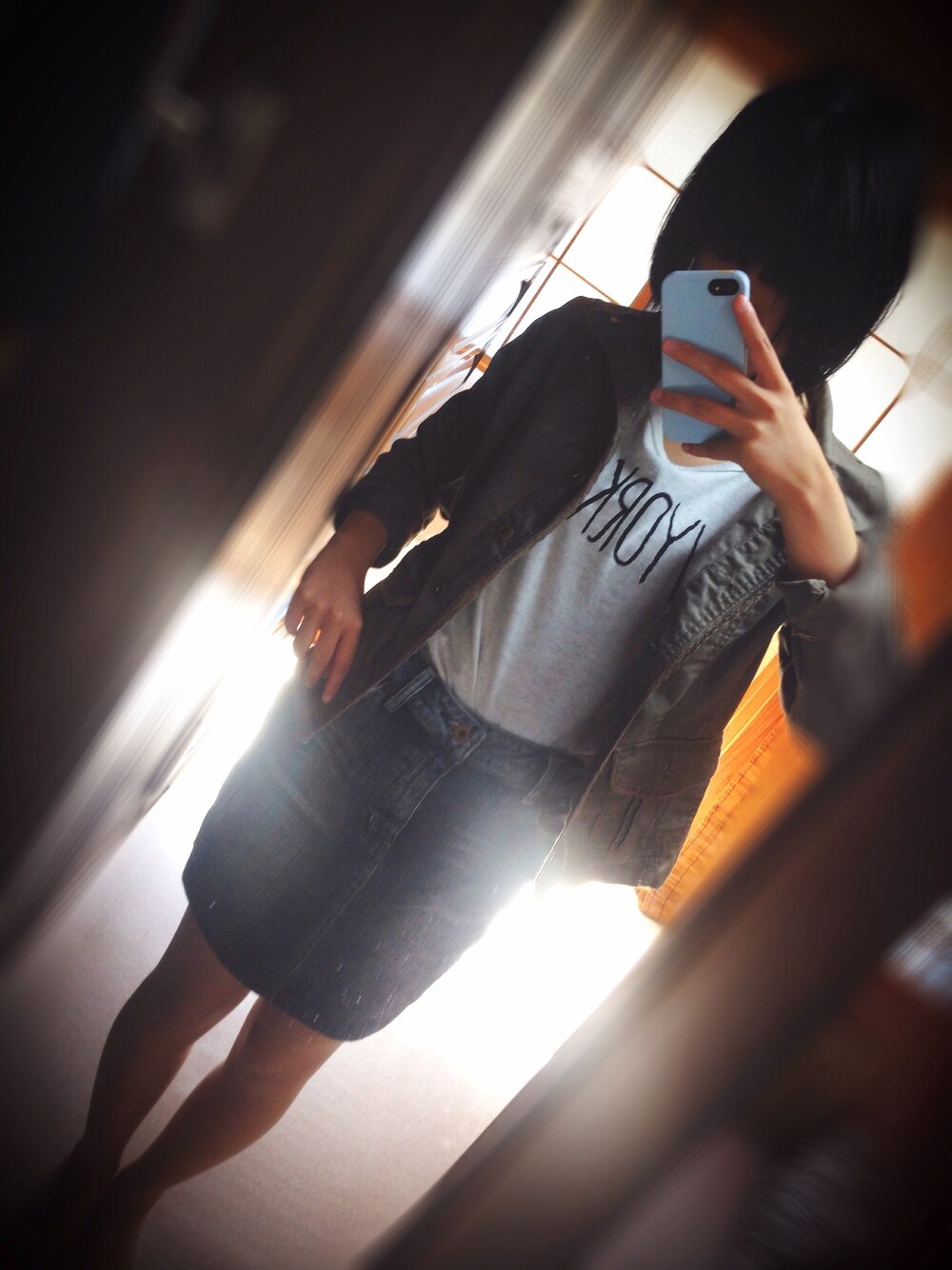 たまこのデニムスカート「MOTO DENIM SKORT/MOTO デニムスコート」を使ったコーディネート
