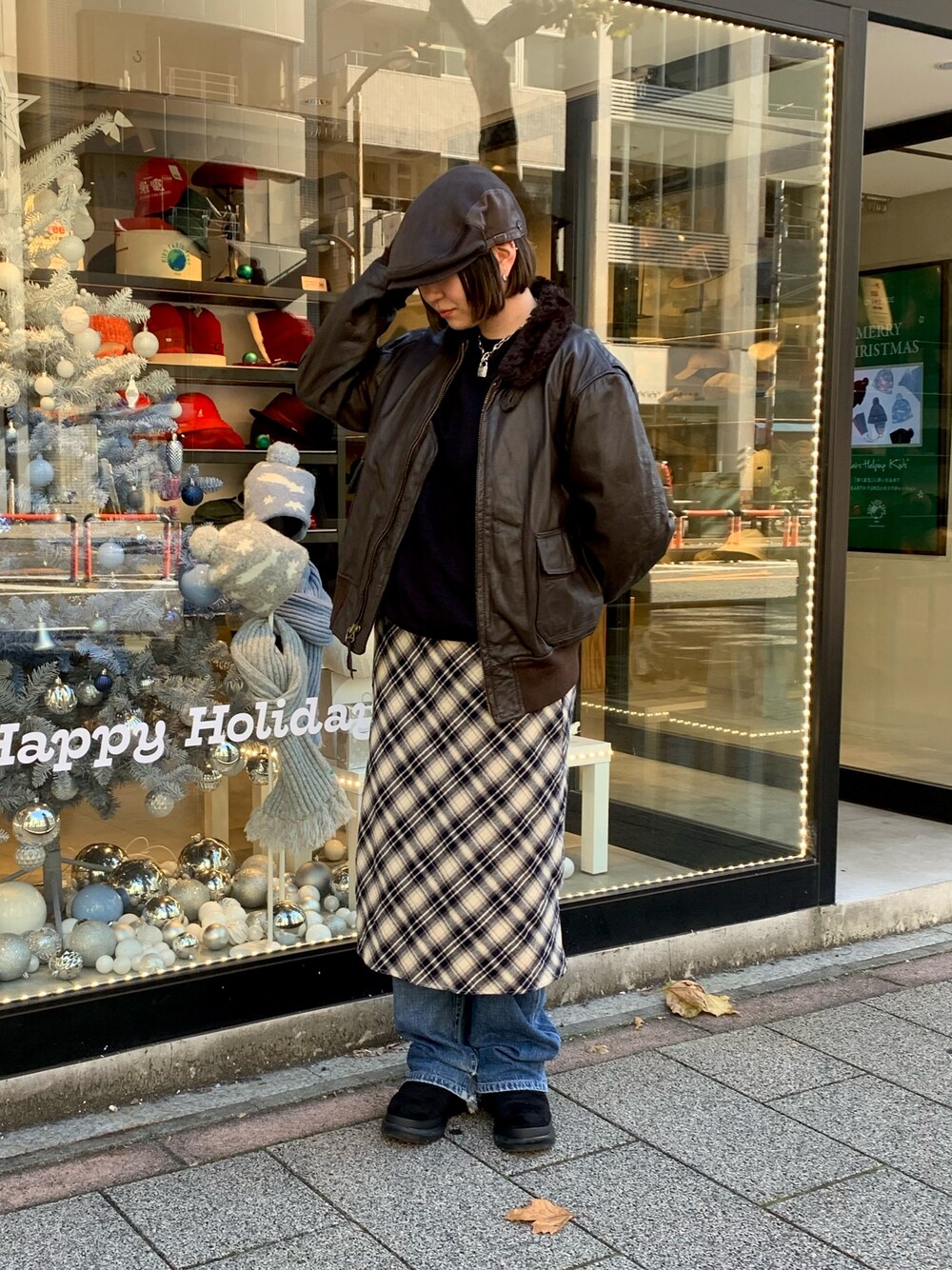コマ(OVERRIDE 神宮前)のハンチング/ベレー帽「arth Cashmere Combi Hunting / アース」を使ったコーディネート