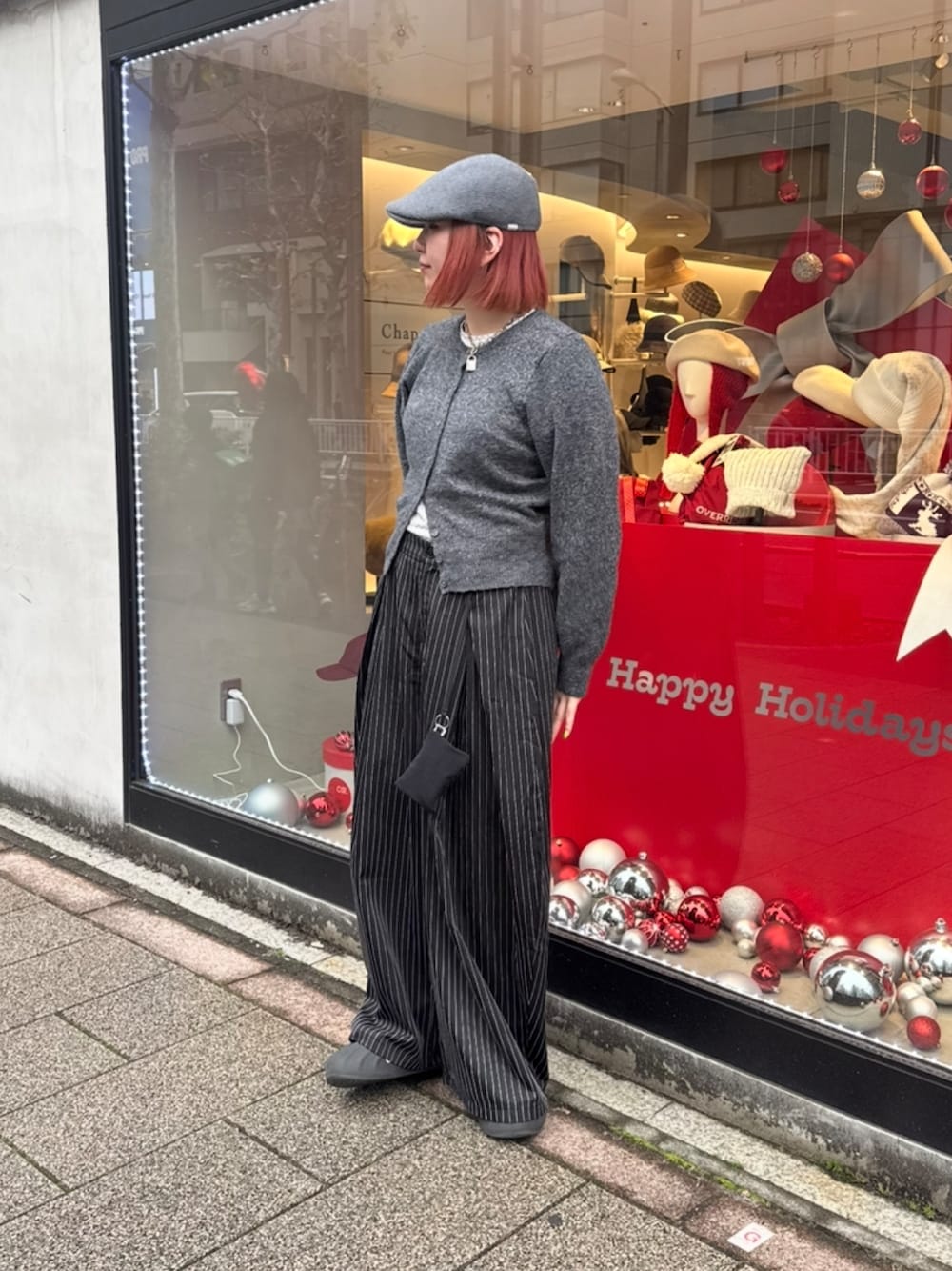 グレー系のハンチング/ベレー帽を着用したレディースの冬コーディネートの1枚目の写真
