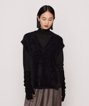 上質で軽量のロングコートはトープの上品なカラーにボルドーのアクセントカラーを効かせています。 ファーの様なニットベストは薄手なのに暖かくレイヤードアイテムとしても便利です! ツイードのワイドパンツで季節感を出しました。