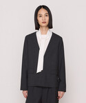 ウール混のポリエステルの風合いで2ウェイストレッチの着心地のよい素材で 長い季節お召しいただけるセットアップです。 新感覚のジップジャケットに、シャツ、タックワイドパンツがあるので お好きな組み合わせでセットアップにしても、単品でも使えるシリーズです。