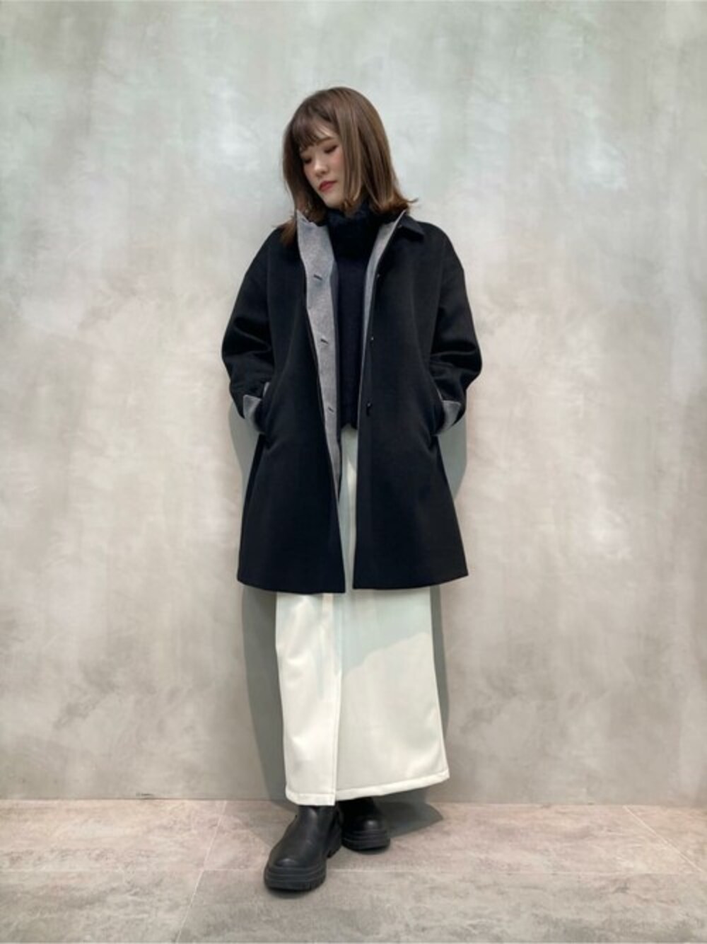 コートは見た目より軽く、ゆったりしたサイズ感で厚手のニットを合わせてもごわつかずにお召し頂けます。 スカートはコンパクトなサイズ感なのでボリュームのあるトップスとの相性も抜群です!