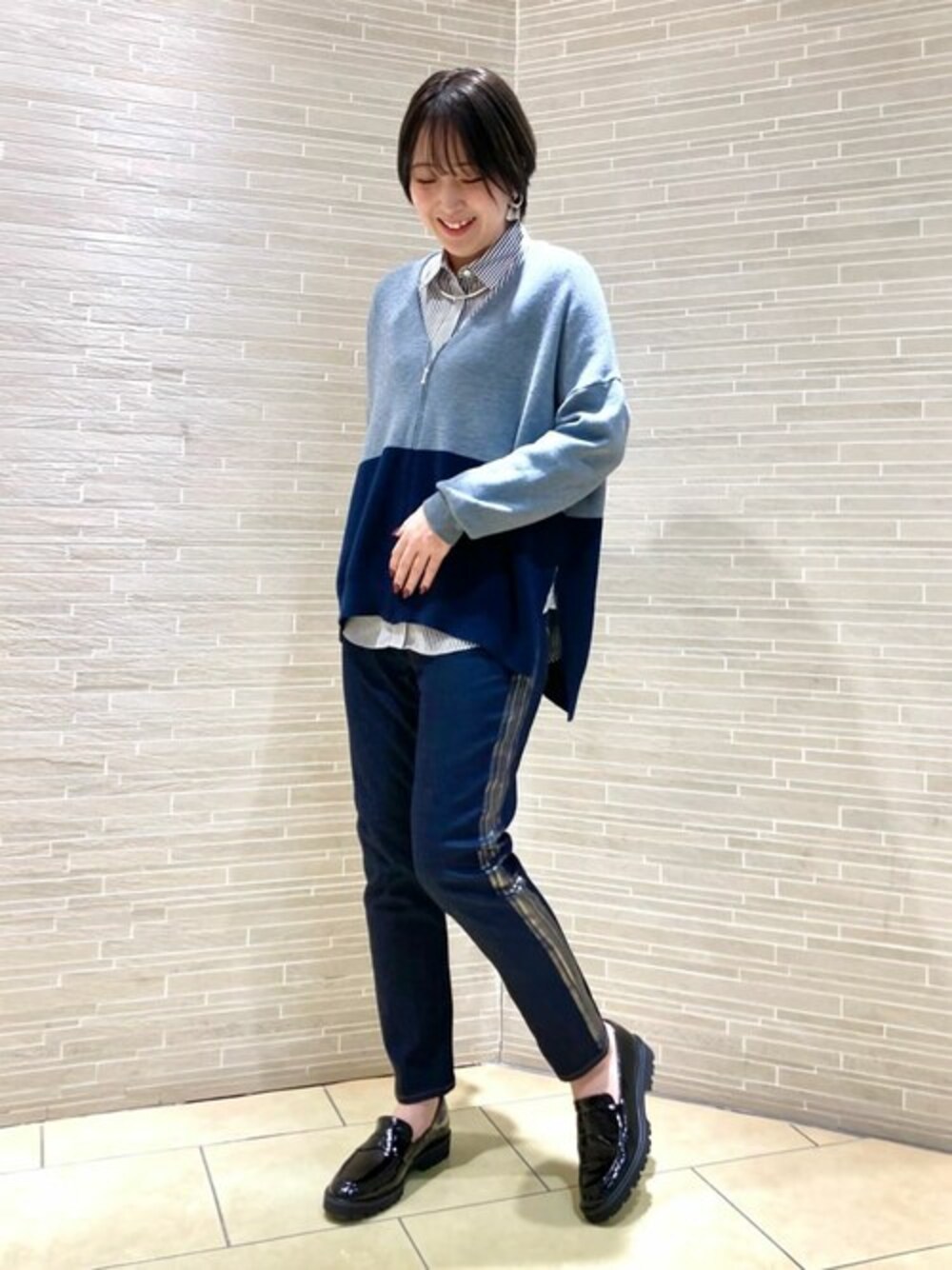 ・ニットカーディガン ワンサイズでゆったり、ヒップまわりも隠れる柔らかい生地です。 ・ストライプシャツ ポリエステル素材でシワになりづらく、ツルッと肌触りが良く、重ね着などにもオススメです。