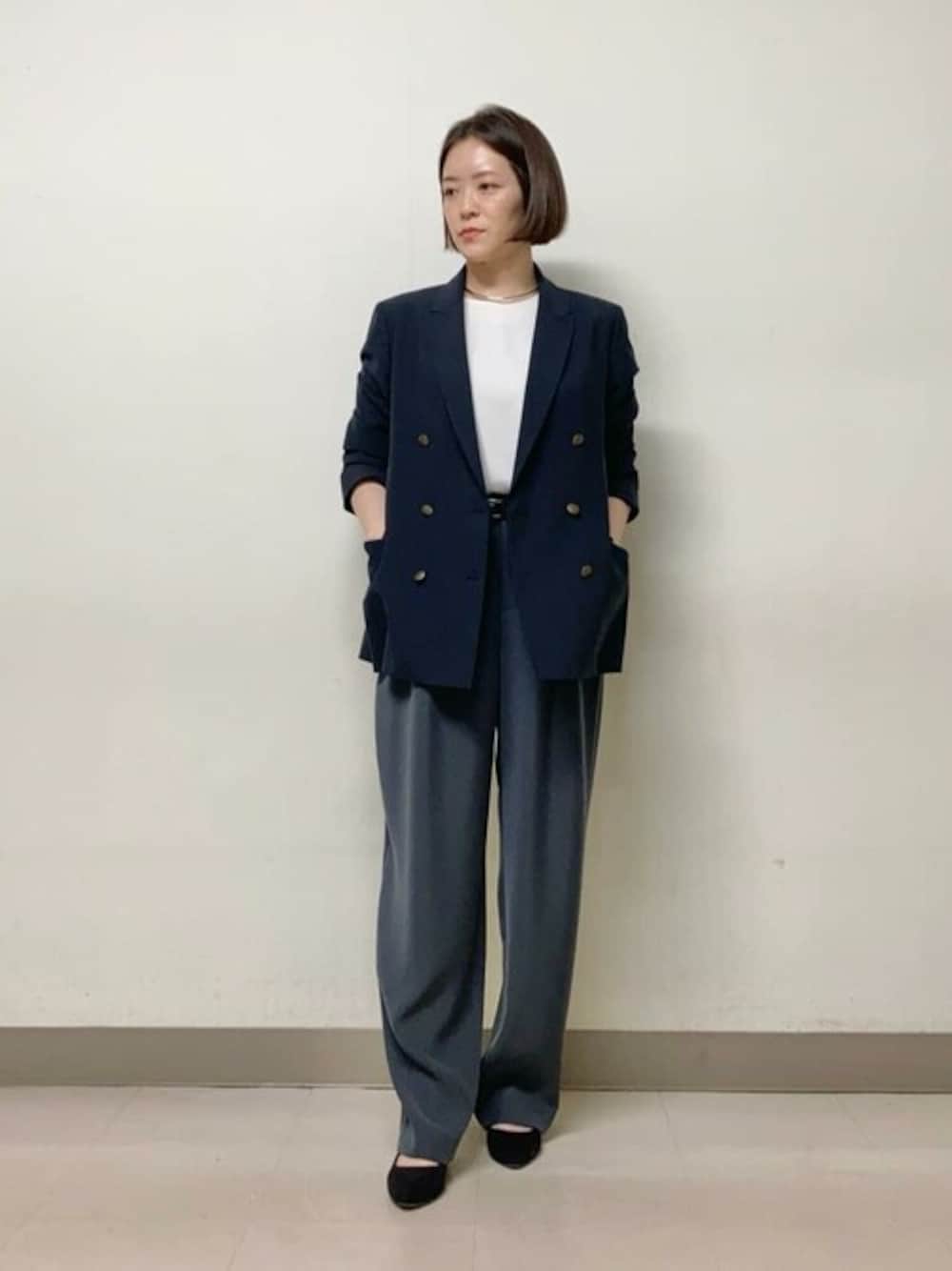 ■紺ブレ 【サイズ感】 ・私の体型だと肩周りと身幅にゆとりがあります。 ・着丈も少し長めでウエスト周りがすっぽり隠れるので安心感があります。 【素材感・着心地】 ・適度な厚さの生地感で季節によってはアウターとして活躍しそうです◎ ・伸縮性があるので動いた時も楽に感じました。 ■プルオーバーブラウス 【サイズ感】 ・ほど良い首のあき加減で、私の体型だと鎖骨がちょうど隠れるくらいです。 ・オーバーサイズで全体的にゆったりしていますが、肩で落ちる素材感なので大きく見え過ぎないのが◎ 【素材感・着心地】 ・さらっとしていてシワになりにくいのが嬉しいポイントです。 ・アイボリーを着用していますが透けにくいと感じました。 ■ツータックパンツ 【サイズ感】 ・股上深めでヒップ周りに安心感があります。 ・身長160センチだと5センチヒールでお直し不要な丈感です。 【素材感・着心地】 ・サラッとした柔らかい素材感で落ち感があります。 ・程よい薄さで春〜秋口まで長く着られそうです。 ■スタイリングポイント リアルバイコーデです。 シンプルなコーデなのでベルトとシルバーアクセをポイントにしています。 この春はいろんなアイテムと相性が良い紺ブレのコーディネートが楽しみです♪