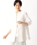 「紙素材で通気性がいい、ふんわりジレ」 《デザイン》 さらっとした肌触りのミディアム丈のジレです。 すっきりした襟元に、たっぷりギャザーを入れた後身頃が新鮮です。 すとんとした前身頃と、ふんわりとやさしい後身頃のシルエットが意外なほどマッチした新しい感覚のジレです。 ギャザーを入れた後身頃は袖ぐりにステッチを入れないことでふわっと仕上がります。 ボリュームのあるお袖のシャツやプルオーバーとも相性の良いカッティングで様々なコーディネイトを楽しめます。 《素材》 従来は平織りですが、今年は綾織りで仕上げています。 綾織りは何本か飛ばして織るため(今回は三本)、縦横の接点が減り、しなやかで動きのある風合いになります。 縦糸は昨年同様の糸で濃色に染め、横糸はそれより一格細い糸で生成を使用し密度を甘めに織っています。 紙本来のハリコシ感に加え、しなやかな動きのある洗練された仕上がりにしています。
