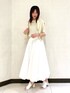 ■カーディガン 9号 【サイズ感】 ・すっきりデザインです。 ・丈があまり長く無いので小柄な方でも大丈夫です。 【素材感・着心地】 ・麻を使用しておりますが、肌が弱い私でも大丈夫なくらい柔らかなタッチです。 ・伸縮性もあり着心地も良いです。 ■ニット 9号 【サイズ感】 ・首元が少し横に広いです。なのでインナーにカラーのタンクトップを見せてお召しください。 ・身頃はゆったりしております。 【素材感・着心地】 ・麻を使用しておりますが、肌が弱い私でも大丈夫なくらい柔らかなタッチです。 ・伸縮性もあり着心地も良いです。 ■スカート 9号 【サイズ感】 ・164センチの私で足首くらいまでの長さでぴったりです。 ・ウエスト周りも大きすぎず綺麗です。 【素材感・着心地】 ・ボリュームがあり、バルーンなので肌にあたる面が少なく夏でも快適にお召しいただけます。 ・綿素材なので柔らかく肌触りも良いです。 ■サンダル Lサイズ 【サイズ感】 ・24.5〜25センチの私でも少しゆとりがありました。 【履き心地】 ・かかとのヒール部分が太く、歩きやすく疲れにくいです。 ・牛革なので柔らかく動きやすいです。 ■スタイリングポイント 爽やかにレモン×白で春夏らしいコーディネートにしました。 シンプルだけどオシャレに。ネックレスやデザインのあるアイテム同士をあわせて上品にオシャレにしてみました! #コムサ #K.T キヨコタカセ #新作 #イエロー系 #ニット #カーディガン #ネックレス #サンダル