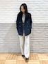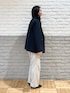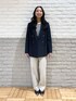■紺ブレ 9号 【サイズ感】 ・ボックスシルエットですが小柄な方でも肩なじみが良く、着られてる感がないです。 ・155cmでヒップが隠れる着丈です。 【素材感・着心地】 ・伸縮性とゆとりがあります。 ■ボーダーニット 9号 【サイズ感】 ・少しコンパクトなシルエットですがピタッとせず着れます。 【素材感・着心地】 ・少し厚みがあるので1枚でも透けず着れます。 ■パンツ 7号 【サイズ感】 ・後ろウエストがゴム仕様です。 ・少し着丈が長いので、ひとおりかベルトで上げるとぴったりです。 【素材感・着心地】 ・サラッとしていてシワになりにくいです。 ■スタイリングポイント カジュアルなイメージのボーダーをジャケットとセンタープレスのパンツで合わせ、キレイめスタイリングにしました。 またシンプルなので、お仕事着でも普段着でも取り入れやすい万能な紺ブレです。