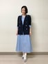 ■紺ブレ 【サイズ感】 ・私の体型だと肩周りと身幅にゆとりがあります。 ・着丈も少し長めでウエスト周りがすっぽり隠れるので安心感があります。 【素材感・着心地】 ・適度な厚さの生地感で季節によってはアウターとして活躍しそうです。 ・伸縮性があるので動いた時も楽に感じました。 ■シャツワンピース 【サイズ感】 ・全体的にゆったりしている印象です。 ・ウエストに付いているボタンをしめて着用するとあまり伸縮性が無い素材感の為、タイトに感じました。 【素材感・着心地】 ・綿100%で程よいハリ感があります。 ・着用し続けると適度にシワができるので気になる方はアイロンが必要です。 ■ラメタンク 【サイズ感】 ・私の体型で9号サイズがジャストサイズです。 ・首元が開き過ぎずちょうど良いと感じました。 【素材感・着心地】 ・ラメ混ですがイメージよりも柔らかく、あまりチクチク感を感じませんでした。 ・伸縮性があるので着脱しやすいです。 ■スタイリングポイント 紺ブレのきれいめワンピースコーデです。 シャツワンピースは裏地無しなのでスカートタイプのペチコートがあるとより快適に着用できます。(透けにくい素材感ですが光の差し具合で変わるのであると安心です) #春コーデ #オンスタイル #きれいめ #紺ブレ #ネックレス #ストライプ