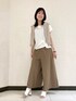 ■カーディガン 9号 【サイズ感】 ・すっきり感もありつつ、ゆったりにも着れます。お袖も気軽にまくれます。 【素材感・着心地】 ・ナチュラルな麻素材です。キラキラなラメがオシャレです。 ■カットソー 9号 【サイズ感】 ・二の腕が隠れるサイズで、丈にタックが入っているのですっきり見せてくれます。 【素材感・着心地】 ・さらりと涼しい素材です。肌にも優しい綿素材です。 ■パンツ 9号 【サイズ感】 ・ワイドシルエットです。腰回りはゴムなので調節がしやすいです。 【素材感・着心地】 ・ソフトな風合いで綿なので、とてもさらりと肌に優しい素材感です。ウエストゴムで、ストレスフリーな着心地です。 ■スタイリングポイント 1枚でもオシャレなタックカットソーは、ワイドシルエットのボトムにもぴったりです。ブラウン系のワントーンコーディネートにしました。