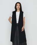 ■ロングジレ 【サイズ感】 ・アームが広めにあいているので色んなインナーとコーディネートできます。 【素材感・着心地】 ・後ろがシフォン素材になっているので全体的に軽い着心地ですが、前部分にかかる重さに着用している安心感があります。 ・夏の重ね着もしやすい素材感です。 ■レースカットソー 【サイズ感】 ・私の体型だとインナーに付いているタンクが少しタイトめな印象ですが外側のレースはゆったりしています。 ・首元のVネックは鎖骨がきれいに見えます。Vネックが深過ぎないのが嬉しいポイントです。 【素材感・着心地】 ・レース部分が風通しが良くかなり涼しく感じました。 ・インナーのタンクが厚過ぎず薄過ぎない生地感で着心地が良いです。 ■ワイドタックパンツ 【サイズ感】 ・私の体型だと9号がジャストサイズですっきりはけます。 ・着丈は身長160センチでお直し不要です。(かかとギリギリ、靴をはくとちょうど良い丈感) 【素材感・着心地】 ・さらっとしていてはき心地が良いです。 ・ワイド過ぎずスッキリはけます。 ・ハイウエスト寄りなのでヒップ周りに安心感があります。 ■スタイリングポイント シンプルなロングジレのコーディネートです。 レースカットソーのタンクのみをボトムインにし、マーベルト風のデザインをチラ見せさせるのがポイントです。