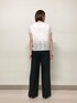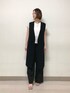 ■ロングジレ 【サイズ感】 ・アームが広めにあいているので色んなインナーとコーディネートできます。 【素材感・着心地】 ・後ろがシフォン素材になっているので全体的に軽い着心地ですが、前部分にかかる重さに着用している安心感があります。 ・夏の重ね着もしやすい素材感です。 ■レースカットソー 【サイズ感】 ・私の体型だとインナーに付いているタンクが少しタイトめな印象ですが外側のレースはゆったりしています。 ・首元のVネックは鎖骨がきれいに見えます。Vネックが深過ぎないのが嬉しいポイントです。 【素材感・着心地】 ・レース部分が風通しが良くかなり涼しく感じました。 ・インナーのタンクが厚過ぎず薄過ぎない生地感で着心地が良いです。 ■ワイドタックパンツ 【サイズ感】 ・私の体型だと9号がジャストサイズですっきりはけます。 ・着丈は身長160センチでお直し不要です。(かかとギリギリ、靴をはくとちょうど良い丈感) 【素材感・着心地】 ・さらっとしていてはき心地が良いです。 ・ワイド過ぎずスッキリはけます。 ・ハイウエスト寄りなのでヒップ周りに安心感があります。 ■スタイリングポイント シンプルなロングジレのコーディネートです。 レースカットソーのタンクのみをボトムインにし、マーベルト風のデザインをチラ見せさせるのがポイントです。