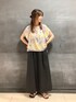 「涼しく、さらさら華やかブラウス」 《デザイン》 胸元のシャーリングギャザーがポイントのプルオーバーブラウスです。 シャーリングギャザーでつくるふんわり感で割繊にボリュームをプラスしています。 一枚でさまになるブラウスです。 身幅や袖はゆとりのあるリラックス感のあるふんわりフレアシルエットです。 体に張り付かず、夏でも涼しく快適です。 ギャザーフレアスリーブが華やかな印象です。 《素材》 KT定番のカッセンオリジナルプリントです。 グレーをベースにパープルやイエロー、グリーンをミックスし、 美しい水彩画のように仕上げた、アートプリントです。 夏のバカンスにぴったりの華やかさとリラックス感をがあります。 他の手法と違い、水を使わない環境に優しい転写プリントです。 ベースは、強撚糸ならではのシャリッと感、割繊ならではの独特の風合いでつくる強撚割繊ジョーゼットです。 夏でも涼しい快適な肌触りです。 エアフロ―加工で生地を揉み込み、こなれたカジュアル感があります。 《セットアップ》 同素材のスカート(商品番号:01-19FG05-204)と合わせて、セットアップとしてお召しいただけます。