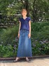 ▪️ニットジレ 【着心地・サイズ感】 とても軽いバスケット編みのような凹凸感のあるサマーツィードニットです。 ストンとしたボックスシルエットで、肩先はフレンチスリーブで腕をほっそり見せてくれます。 ▪️スカート 【着心地・サイズ感】 綿100%でストレッチのないデニム。11オンスのしっかりした生地感がボディラインを美しくみせます。 ウエストは少し大きめで腰位置に合わせてベルトをつけて長さも調整して着れます。 ▪️コーディネートポイント ワントーンで統一した夏らしい合わせです。ロングデニムスカートは短めのトップスと合わせて足長に見せてくれます。