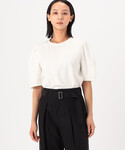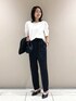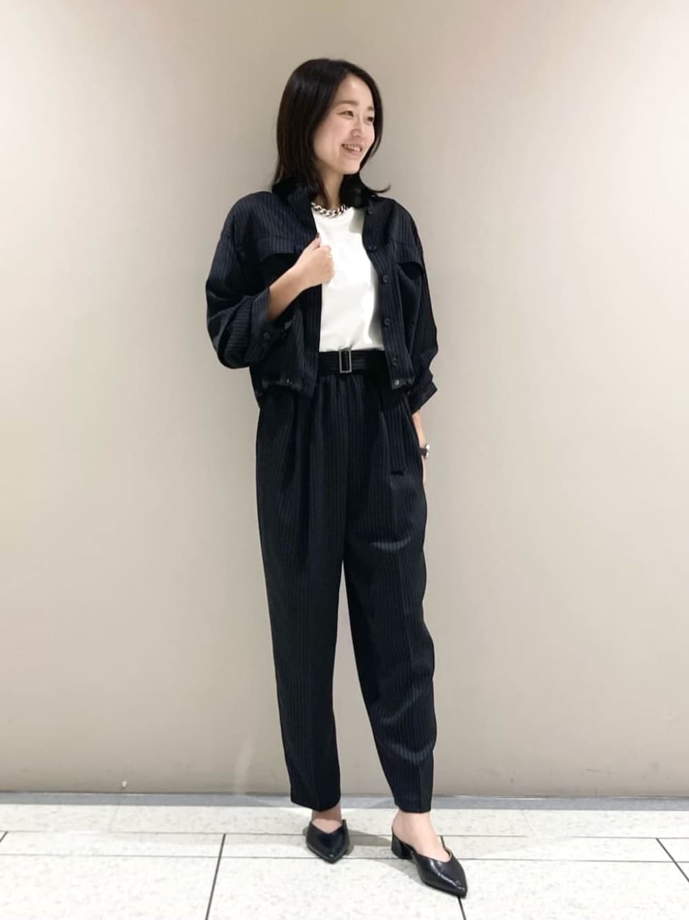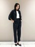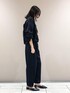 《デザイン》 程良いはりとサテンの光沢できれい目に表現したマニッシュなシャツジャケットです。 ドロップショルダーからなるボックスシルエットと旬な短めの着丈で軽やかに仕上げています。 3段階の袖の長さを調節できるデザインスリーブです。 裏のタブ、釦とスナップでタックドレープのデザインスリーブに変化させることができ、袖をロールアップするのとは、違う新鮮なデザインの袖を楽しめ、簡単にこなれ感のある着こなしが完成します。 《デザイン》 ぐるりゴムでイージーな履き心地がありつつ、 センタープレスを入れることできちんと感があるワイドパンツです。 タックとギャザーでヒップに張り付かず、 ふくらみを高い位置で保ち、ヒップを高く見せてくれます。 ストライプの柄で縦のラインを強調する効果と相まって 脚を長く見せる効果が期待できます。 共地ベルト付きでゴムギャザーを隠し、よりきれいに見える仕上がりです。 裾の内側にはドロストがあり、シルエットを調節することができます。 裾を絞り、15-03PI06-204とオールインワン風で着て頂くとトレンドのスタイリングが叶います。 きちんと感がありながらも感度の高い着こなしが叶います。 裾は立体感のあるフォルムで、さらに裏のタブ釦とスナップでたくし上げたようなタックのデザインにアレンジができ、簡単にこなれ感のある着こなしが完成します。 大き目のポケットがこなれ感のあるカジュアルさを演出しています。 裾はレザーのような光沢が特長のサテン使いで全体を引き締めています