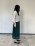 《デザイン》 大きなヒダが旬のサイドプリーツロングスカートです。 こだわりの美シルエットで、太めのプリーツ幅(4.5cm幅)が旬です。 広がりすぎず、すとんと落ちるロングのセミAラインシルエットが大人っぽい一着です。 共地のゴム仕様できれいめながらも長時間の着用感も快適なリラックス感です。 太めのベルト幅でスタイルアップも期待できます。 裏地付きで透けも気にならず安心して着られます。 TALL、Sのプリーツスカートのみチャコールグレーの色味が絶妙に違います。 《デザイン》 繊細な線で描いた絵画の様な柄をシルクツイルにプリントした大判スカーフです。 シンプルな三色配色ですが、様々なタッチの線で表現しているので奥行きのある仕上がりになっています。 今回のプリントは「手捺染」という昔からある職人技でつくっています。 手捺染とは、布に一色ずつ丁寧な手作業でプリントしていく染め方です。 染めたい模様を型取った板をあてがってその上からヘラ等を使い手作業で染料を塗っていきます。 その特長は繊細で美しい柄の再現にあります。 今回採用した繊細な線画も高いクオリティーで表現しています。 一色につき一枚の板を使い染めていく為、三色の場合一色を染めて乾かし、また次の色を染めるという工程を三回繰り返します。 一つの製品が完成するまで職人が時間をかけて行います。 首元にさらりと巻いたり、シンプルなニットやカットソーにコーディネートすると、クラシカルなスカーフ使いで新鮮な印象です。 シルクは肌にとても優しい素材です。 吸水性が高く放湿性が高いのが特長の為、汗をため込まず素早く放湿します。 シルクを身に着けると夏は涼しく、冬は暖かく感じるのはその為です。