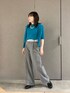 ◾️ニット 着用9号 【サイズ感】 ・少しタイトな袖ですが、窮屈感なくお召しいただけます。カーディガンを羽織った際にもたつきません。 【素材感・着心地】 ・さらっとした素材感です。 五分袖なので1枚でも気軽にお召しいただけます。 ◾️パンツ 着用9号 【サイズ感】 ・腰回りが少しタイトなサイズ感ですが、後ろにゴムが入っているので、ウエストは窮屈感がないです。 【素材感・着心地】 ・さらっとした素材感で着心地が良いです。 太すぎないワイドパンツなのでスッキリお召しいただけます。 ◾️スタイリングポイント 鮮やかな色味のアンサンブルにグレーのワイドタックパンツを合わせた大人カジュアルコーディネートです。