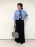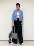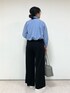 ◼︎シャツ 9号 【サイズ感】 ・裾にゴムが入っており、ボタンを締めた時も胸下が膨らんで見えづらいです。 ・身幅・腕周り共にゆったりしています。 ・着丈が短めなので、ワイドパンツやスカートとバランス良く合わせられます。 【素材感・着心地】 ・柔らかい着心地ですがギャザーで立体的なシルエットになっており、羽織としても安心感があります。 ・とても軽いです。 ◼︎パンツ 9号 【サイズ感】 ・ウエストはゴムで、楽に着用できます。 ・ヒップ〜太もももたっぷりとしたシルエットで、体のラインを拾いません。 【素材感・着心地】 ・ジャージー素材で、落ち感があり裏地もないので涼しく着用できます。ジレとセットアップでお作りしております。 ・股下長めで、裾幅も広めです。 ◼︎スタイリングポイント トラッドな雰囲気に、厚底スニーカーを合わせてオシャレな雰囲気にしました。