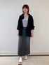 〈シャツ〉 【サイズ感】 ・ゆったりしていて、ヒップが隠れる安心丈になっています。 【素材感・着心地】 ・キュプラ、シルク特有の光沢があり高級感あふれる素材感です。 ・軽い着心地です。 ・フリルもポイントになっていて、シャツ羽織として着用した際もカジュアルになりすぎず、キレイめのワンピースなどにも合わせていただきやすいです。 〈デニムスカート〉 【サイズ感】 ・ぴったりめのサイズ感です。 普段は9号がジャストの方ですと、ウエストは少しゆとりがあるくらい、腰骨あたりがピタッとするサイズ感です。 ・ウエストゴムではない+伸びないので、少しウエストにゆとりが欲しい方、腰骨あたりが気になる方は11号がオススメです。 ・丈は長めにできており身長161センチでちょうど足首ぐらいの長さです。 【素材感・着心地】 ・綿100%でしっかりした生地感です。ボディラインを美しく見せてくれる効果を期待できます。 ・足捌きが良いので普段パンツが多い方でもチャレンジしていただきやすいと思います。