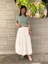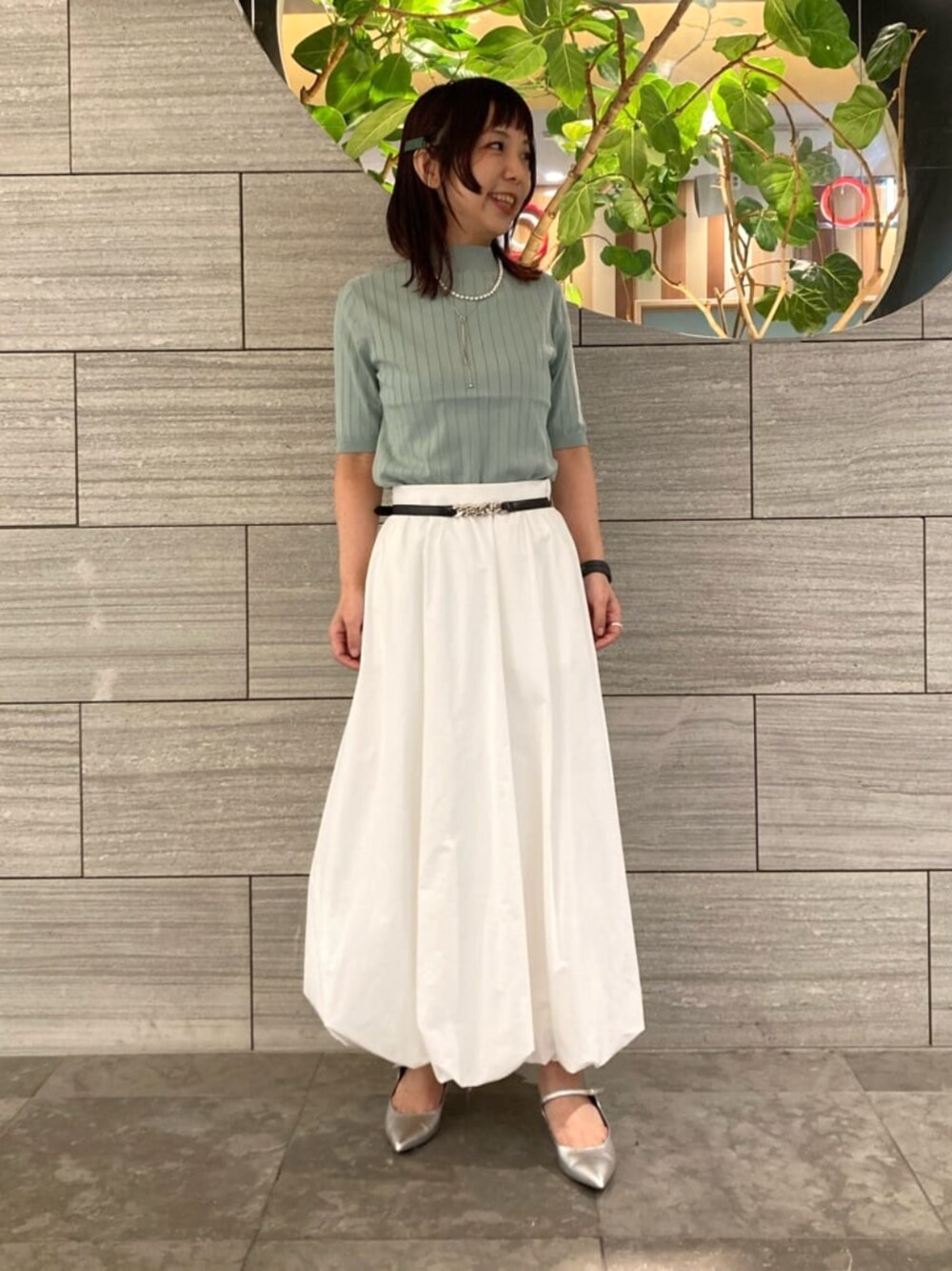 人気のバルーンスカート×ミントカラーでつくるキレイめスタイリングです。 プルオーバー 【着心地・サイズ感】 ニットは程よいフィット感で体のラインを拾いません。 モックネックの首周りは首をすっきりみせてくれる効果が期待できます。 バルーンスカート 【着心地・サイズ感】 ボリュームがある分、お腹周りをカバーし、ウエストがすっきりみえます。 ドライで軽い素材感で着心地も良いです。