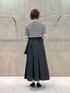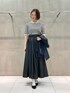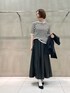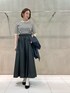 ■紺ブレ 【サイズ感】 ・私の体型だと肩周りと身幅にゆとりがあります。 ・着丈も少し長めでウエスト周りがすっぽり隠れるので安心感があります。 【素材感・着心地】 ・適度な厚さの生地感で季節によってはアウターとして活躍しそうです。 ・伸縮性があるので動いた時も楽に感じました。 ■ボーダーニット 【サイズ感】 ・私の体型だと肩周りや背中にフィット感があります。 ・袖の長さが絶妙で腕をすっきり見せてくれる効果が期待できます。 【素材感・着心地】 ・生地に厚みがあり、着用したボーダーは透けがあまり気にならないと感じました。 ・タイトめですが伸縮性があるので着やすいです。 ■タフタロングスカート 【サイズ感】 ・着丈長めですがかなり軽量です。 ・ウエスト後ろが太めのゴム使用で安心感があります。 ・ふんわりしていて適度なボリューム感があります。 【素材感・着心地】 ・生地は薄いですがタフタ特有のハリ感があります。 ・裏地無しなので、タイツなどを履く時は静電気が起きやすいです。お持ちのペチコートの使用をおすすめします。 ■スタイリングポイント 旬な紺ブレとボーダーニットの王道スタイルにタフタ素材のロングスカートを合わせました。 紺ブレとタフタスカートは他のアイテムともスタイリングしやすいのでおすすめです。