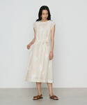 ■リネンジャケット 9号 【サイズ感】 インナーを着ても身幅にゆとりがあるサイズ感です。ストレッチ性があり快適な着心地です。 【素材感・着心地】 麻のナチュラルな素材感とトリアセテートの光沢感としなやかさがあります。 袖はたくし上げたようなこなれ感がおしゃれなデザインスリーブです。 ■ドレス 9号 【サイズ感】 ウエストラインにゴムが入っており、程よくフィットしながら楽な着心地です。 【素材感・着心地】 麻のカットジャカードがナチュラルな印象のフレンチスリーブドレスです。 これからの季節にぴったりな軽さや涼しさが感じられます。 【スタイリングポイント】 ワンピース、ジャケット、アクセサリーともに淡いカラーのワントーンで合わせました。