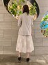 ■リネンジャケット 9号 【サイズ感】 インナーを着ても身幅にゆとりがあるサイズ感です。ストレッチ性があり快適な着心地です。 【素材感・着心地】 麻のナチュラルな素材感とトリアセテートの光沢感としなやかさがあります。 袖はたくし上げたようなこなれ感がおしゃれなデザインスリーブです。 ■ドレス 9号 【サイズ感】 ウエストラインにゴムが入っており、程よくフィットしながら楽な着心地です。 【素材感・着心地】 麻のカットジャカードがナチュラルな印象のフレンチスリーブドレスです。 これからの季節にぴったりな軽さや涼しさが感じられます。 【スタイリングポイント】 ワンピース、ジャケット、アクセサリーともに淡いカラーのワントーンで合わせました。