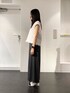 ■ニットジレ フリーサイズ 【サイズ感】 ・ボックスシルエットで少しゆったりしている着心地です。 5号と15号もお作りはあるのでお好きなサイズ感でお召しいただけると思います。 【素材感・着心地】 ・素材は半分以上がポリエステルなのでシワ感も気になりにくいです。 ・綿が少し入っているので着心地も良いです。チクチクする感じも特になかったです。 ■パンツ 9号 【サイズ感】 ・丈の長さは補正なしでかかとにかかるくらいでした。 ・普段は7号を履くのですが、ウエストはゴムでドロスと仕様になっています。少し大きくても絞って調節できます。 【素材感・着心地】 ・手触りはサラサラした感じです。 ・リバーシブルになっているので気分に合わせてお好きな色を表にして履くことができます。 ■スタイリングポイント ベストはノースリーブのインナーと合わせて夏らしい涼しさを取り入れました。 ニットジレは白にして明るさを出しました。