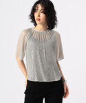 《デザイン》 ポンチョのようなシルエットが新鮮なブラウスです。 プリーツを縦方向に使い、すっきりとシャープなシルエットが特徴のシアートップスです。 透け感があるのでインナーにタンクトップなどを合わせて下さい。 ギャザーでつくる美しいシルエットです。 身頃にギャザーを入れることで身体のラインを拾いにくくなっています。 袖も同様ギャザーを施し、立体的なフレアスリーブできれい目カジュアルを実現しています。 共布でつくるラウンドネックは顔回りをすっきりと見せてくれる効果が期待できます。