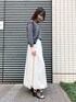 ■ プルオーバー 着用サイズ9号 【サイズ感】 五分袖でジャケットのインナー等にもお使いいただけます。 【素材感・着心地】 麻素材なので夏でも涼しくお召しいただけ、アンサンブルのカーディガンとの合わせもおすすめです。 ■バルーンスカート 着用サイズ9号 《デザイン》 人気のバルーンスカートに新色を追加して、再登場です。 お客様のご要望にお応えし、11号サイズを新たに展開しています。 裾にギャザーを入れ、裏地で吊ることでつくる、ボリューミーなふんわり感が新鮮なバルーンシルエットです。 贅沢に生地を使用してつくるシルエットは、どこかモードな印象です。 ウエストの前はベルト仕様で、きちんと感をプラスしています。 後ろはゴム入りで快適に着られます。 ウエストにギャザーを入れることでおなかの膨らみも気にせず着られます。 便利なポケット付きです。 K.Tのジレ(商品番号:01-08VK01-205)とあわせるとオフィスやオケージョンでも活躍する万能アイテムです。 足元もスニーカーから夏のサンダルまで様々なスタイリングが可能です。 ■スタイリングポイント アンサンブルのカーディガンとバルーンスカートを合わせてキレイめカジュアルコーディネートがおすすめです。