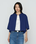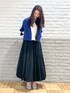 ■カーデブルゾン <サイズ感> ・9号でも着丈がショート丈なのでコンパクト感があります。 ・着丈に前後差があり、前見頃はおへそあたりです。 <素材感・着心地> ・綿素材なので肌触りが柔らかく心地良いお素材です。 ・お袖周りか広めで、肌離れするので脇下が涼しく感じます。 ■ツィードニット <サイズ感> ・9号でゆったりめのボックスシルエットです。 衿ぐりが深いVネックなので、インナーにキャミソールやタンクトップを合わせた方がおすすめです。 ・着丈が49㎝、ショート丈です。 <素材感・着心地> ・チクチク感は無く、柔らかいです。凸凹感のあるバスケット編みとなっています。 ■バルーンスカート <サイズ感> ・160㎝の身長に7㎝のヒールを合わせたので9号を着用してます。7号だと少し短めに感じました。 ・7号でも、9号でも広がり感はあまり無かったです。 <素材感・着心地> ・生地が柔らかく穿いていて軽やかです。 ・綿100%で夏仕様になっており、涼しく感じます。 ■スタイリングポイント バルーンスカートに初挑戦しましたが、挑戦しやすいです。 1枚持っているとコーディネートの幅が広がります。 黒✖️ブルーで、より鮮やかにブルーが引き立つスタイリングです。