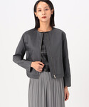 ワンピース 《デザイン》 落ち感と透け感がエレガントなアートプリントドレスです。 フレアスリーブやウエストベルトなどで、残暑も一枚着ればきちんときまる一着に仕上げています。 フェミニン、細見えディテールです。 前中心部分にタックを施し、全体をすっきり見せるIラインシルエットです。 洗練された広めのラウンドネックにパイピングを施し、顔回りをすっきりと演出しています。 上品なフレアスリーブで、袖はフレアになっているので気になる二の腕もすっきりカバーします。 パイピングを施した共布ベルトは片蝶結びでウエストをマークし、スタイルアップ効果が期待できます。 エフォートレスな着心地で、ウエスト切り替えはゴム入りで快適に着られます。 着るだけでブラウジングされ、ベルトなしでもシルエットをキープします。 ブルゾン 《デザイン》 いち早く秋の雰囲気を先取りするミリタリ―カラーのMA-1ブルゾンです。 肌接点の少ない涼やかな生地感とノーカラーで、暑い真夏から秋まで羽織れるブルゾンに仕上げています。 大人のARMYを追求したシンプルなディテールです。 MA-1の代表的なディテールである左腕のポケット、ドット付きの箱ポケット、リブなどを一つ一つ取り除き、素材の上質感と色で大人のMA-1を追求しています。 光沢のディテールでフェミニンをプラスしています。 高級エクセラファスナーを使用しています。 きらりと輝くのがポイントです。 袖や裾の見返しにサテンを使用し、上品な光沢で裏まで美しい仕上がりになっています。 モッズのフィッシュディテールをイメージした後下がりのテントシルエットです。 旬のショート丈でありながら後ろが長く、大人も挑戦しやすい仕様です。 シアーデジタルチェックのブラウスアップとのスタイリングが新しいです。 ミリタリ―×シアーチェックの新鮮・秋コーデを是非お楽しみください。
