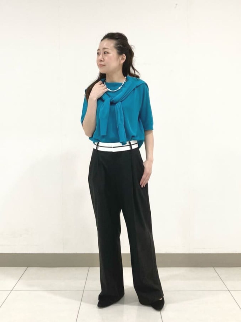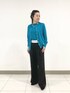 カーディガン 《デザイン》 極細糸をハイゲージの一本取りで透け感のある薄い編み地に仕上げています。 シアーながら透けすぎない使いやすいカーディガンです。 ニットシアーな素材感を活かしたセットインスリーブのシンプルなデザインです。 襟、袖、裾口は太めのリブ附属でカジュアルなテイストに仕上げています。 袖口リブはブラウジングしやすく、裾る部はサイドスリット入りでゆとりをもたせています。 適度にゆとりのある回しの効くサイズ感です。 長袖なので冷房対策にもなり、キャミソールやタンクトップの上に合わせて透け感を楽しめます。 抜群の軽さでコンパクトにたたんで持ち運びいただけます。 《素材》 毛羽の少ない綿糸を芯に周りアセテート長繊維でカバーする撚糸の糸です。 強い撚糸をかけていますのでさらっとした風合いの編地になります。 プルオーバー 《デザイン》 インナーはミラノリブ編みで一枚でも着用可能な編み地にしています。 ハイゲージなので通常よりソフトな風合いが特長です。 襟元は見返し仕様のクリーンな仕様で、鎖骨に沿ってカーブを描くボートネックは首元がすっきりと美しく見えるカッティングがポイントです。 少しゆとりのあるサイズ感の五分袖プルオーバーです。 袖口スリット入りでターンバックしてひじにかからないよう長さを調節していただけます。 単品でのニットトップとしてはもちろん、同素材のカーディガン(商品番号:15-56IK10-205)とのセットコーディネートもオフィススタイリングとしてもお楽しみください。 《素材》 毛羽の少ない綿糸を芯に周りアセテート長繊維でカバーする撚糸の糸です。 強い撚糸をかけていますのでさらっとした風合いの編地になります。 パンツ 《デザイン》 マーベルト風のデザインがトレンド感のあるワイドタックパンツです。 主にメンズのスラックスの内側のディテールであるマーベルトをデザインとして表に出し白に黒のラインでアクセントになると共にマニッシュな印象にしてくれます。 ベルトデザインが活きるようショート丈トップスと合わせたり、トップスをインする旬なスタイリングがおすすめです。 またシャープな見た目はそのままにしつつ、履き心地も兼ね備えられるよう、後ろベルトのゴムギャザーの分量やホールド感を考慮し、ダーツを左右二本ずつ入れインしてもかっこよく決まるようにこだわっています。 同月展開のジレ(商品番号:54-04VK04-205)と大人ハンサムなオフィススタイルはもちろん、一着映えするので単品としてもオンオフ問わず活躍するアイテムです。