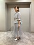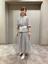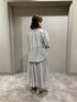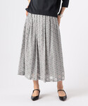 ブラウス 《デザイン》 透け感と柄を活かした、立体的なタックでつくるタックシャツです。 前釦を閉めてシャツとして、釦を開けると羽織としてもお召しいただけます。 肩タックと身頃のタックで程良いボリュームと立体感を出した旬のシルエットです。 身体から離れ、涼しく感じられるシルエットをつくります。 前立は、柄を活かした比翼仕立てですっきり見えます。 ラグランスリーブが着心地の良さをプラスしています。 左前立やカフス裏、襟と裾の見返しの無地別布がシャープに引き締めます。 スカート 《デザイン》 籠目柄を最大限に活かした、フェミニンなタックスカートです。 柄を一ピッチずつ畳むことで、柄が崩れず脇線まできれいな柄が通ります。 ウエストはサテンゴム仕様で快適な履き心地です。 ウエスト端から少し覗くダークネイビーのゴムが、キリッと引き締まった印象です。