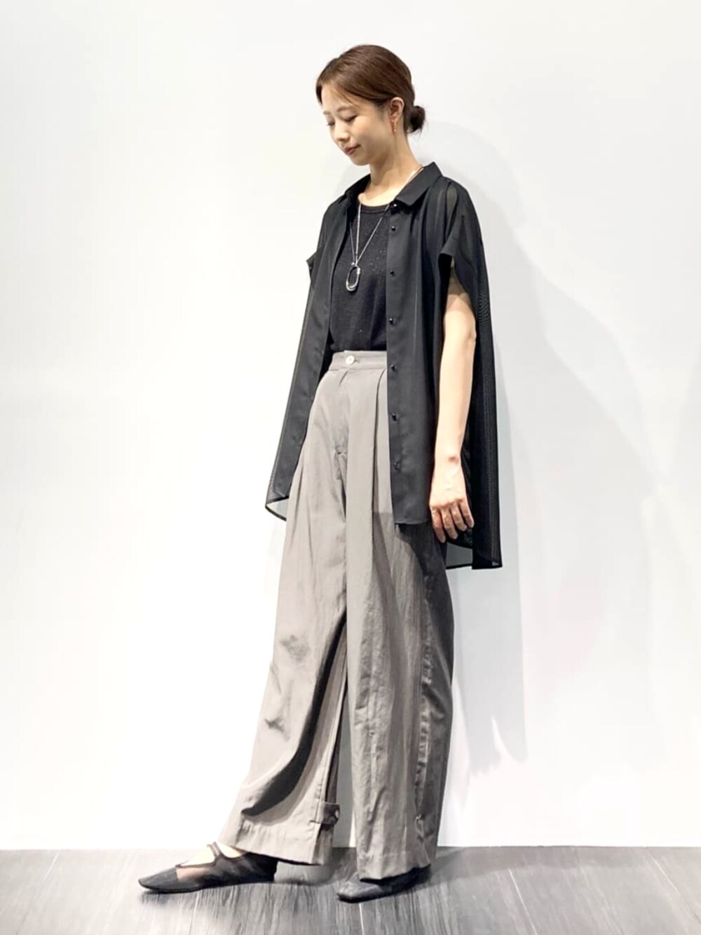 シャツ 着用サイズ9号 【サイズ感】 ・Aラインでゆったりと着ていただけます。 ・ヒップ周りをカバーしてくれる着丈で、安心感があります。 【素材感・着心地】 ・透け感があって、通気性が良く、涼しく着られます。