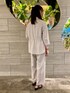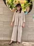 ■ジャケット 着用サイズ9号 【サイズ感】 普段ジャケットは11号を着ることが多いですが9号でほどよいゆとりのあるサイズ感のジャケットです。身長164センチでヒップまでカバーされる丈感です。 【素材感・着心地】 素材はさらっとした肌触りで、これからの季節に選びやすいアイテムです。 これからの季節に嬉しい短めの袖丈です。スリット仕様なので折っていただき抜け感をだすのもおすすめです。 ■トップス 着用サイズ9号 【サイズ感】 体のラインを拾いすぎず、ほどよいゆとりがあります。 【素材感・着心地】 しなやかでハリのある素材です。ストレッチが効いていて楽な着心地です。 1枚で様になるデザインなので暑くなるこれからの時期にぴったりの1着です。 ■パンツ 着用サイズ9号 【サイズ感】 ウエストは後ろがゴムギャザーで履き心地が良いです。 【素材感・着心地】 程良く太さのあるすっきりとしたワンタックストレートパンツです。 ベタつかず肌触りもよく、これからの季節に快適にお召しいただけます。