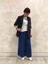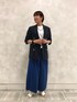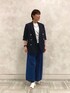 ■ジャケット 着用サイズ9号 【サイズ感】 ・トレンドの長め丈です。 ・肩周りはジャストで着ています。 【素材感・着心地】 ・暑い時は袖のボタンを外してさらに楽に着られる仕様です。 ・麻の涼しさとポリエステルの強度を併せ持ったシワになりにくい生地です。 ■半袖カットソー 着用サイズ9号 【サイズ感】 ・袖はジャケットを着てもゴワつきにくいフレンチスリーブです。 ・ウエストのタックで丈は少し短めになっています。 【素材感・着心地】 ・毛羽立ちの少ないサラッとした生地です。 ・綿100%なので夏におすすめです。 ・ボトムスにインせずに着れる着丈でウエスト周りがスッキリ見えます。 ■パンツ 着用サイズ9号 【サイズ感】 ・ウエストがゴム+紐仕様で調節しやすく楽に着られます。 ・ウエストの上げ下げで長さの調整も可能です。 【素材感・着心地】 ・裏表でカラーと質感の違うリバーシブル仕様です。 ・ブルーは少しフェミニン、ブラックはフォーマルな印象です。 ・シワを気にせず穿けるパンツです。とても肌触りが軽く汗をかいてもサラッとしています。 ■サンダル 着用サイズ9号 【サイズ感】 ・普段の靴は11号を履きます。 ・ベルト部分を少し緩めています。かかとが少し出るくらいのサイズ感です。 【素材感・着心地】 ・ヒールが太めなので、高さはありますが安定感があり歩きやすいです。 ・ストラップ部分にゴムを若干使っていることで、歩く時に足首への圧迫感を感じず楽に履けます。 ■スタイリングポイント カラーを効かせつつ落ち着きもある、初夏のオフィススタイルを意識しました。 ジャケットを脱いでもウエストタックとネックレスでシンプル過ぎずオシャレに決まります。