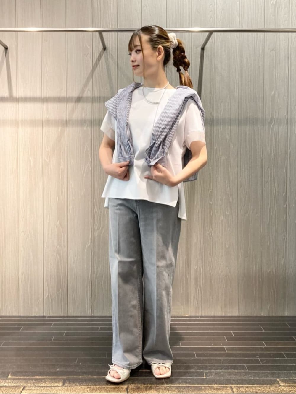 ◼️カットソー 【サイズ感】 首元も開きすぎず、安心してお召いただけます。 【素材感・着心地】 ゆったりとした丈感でヒップが隠れるながさになっているので、1枚でも安心してお召いただけます。 ◼️パンツ 【サイズ感】 少しゆとりのあるデニムで、股上も深く安心するデニムです。 【素材感・着心地】 ストレッチが効いており、動きやすいデニムです。 ◼️コーディネートポイント アクセサリー使いでカジュアルなコーディネートに大人っぽさがプラスされます。