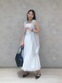 ♦︎ストレッチカラミ ジレ 【素材感・着心地】 夏にぴったりのさらさらした肌触りのからみ織です。 通気性もよく軽い着心地で、暑い時期のコーディネートにサッと羽織るのにちょうどいいアイテムです。 【サイズ感】 ︎アームホールはゆとりがありどんなインナーにも合わせやすいです。 サイドにスリットが入っておりボトムも選びません。 ♦︎エアリータフタ バルーンスカート 【素材感・着心地】 表地は綿混で柔らかい素材です。裏地はポリエステルでさらっとした肌触りです。 後ろウエストがゴム仕様になっており、楽な履き心地です。 【サイズ感】 ウエストはトップスをインできる余裕があります。 □スタイリングポイント 『暑い日でもきちんと感が欲しい。』そんな時に活躍するジレです。 インナーにはサテンの切り替えキャミソールを合わせてシンプルできれいめにまとめています。