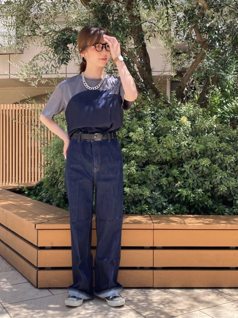 ○カットソー 【サイズ感】 ・ワンサイズなので身幅はかなりゆったりです。 ・少し肩が落ちる感じで袖の長さも安心できる長さです。 【着心地・素材感】 ・接触冷感なので暑い日も涼しくて着心地が良いです。 ・付属のベルトでウエストマークをしてもすっきりしてバランスが良いです。 ○パンツ 【サイズ感】 ・ウエストは丁度良いですがベルトをした方がよりフィットして安心です。 ・身長155センチだと丈は少し長く感じました。 【穿き心地・素材感】 ・柔らかくて穿きやすいです。 ・ハイウエストでセンタープレスが入っているので脚を綺麗に見せてくれ、カジュアルになりすぎないデザインがコーデを引き締めてくれてます。