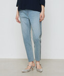 ○ラメニット 【サイズ感】 ・袖は肘にかかる丈で、二の腕もカバーできます。 【素材感・着心地】 ・麻が79%入っているので、夏でも涼しいです。 ・前後2WAYでお使いいただけます。 ○デニムパンツ 【サイズ感】 ・くるぶしにかかる丈です。 ・ヒップにはゆとりがあります。 【素材感・着心地】 ・ウエストがゴムなので穿きやすいです。 ○キャップ F(57.5cm) 【サイズ感】 ・後ろで、幅の調節ができます。 ・やや浅めのキャップです。 【素材感・着心地】 ・柔らかく、軽い生地なので被りやすいです。