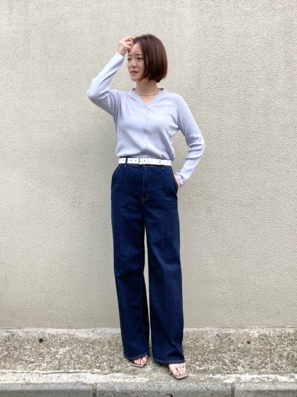 ■リブニットカーディガン 【サイズ感】 ・リブニットなので細身に感じますが、ほど良い伸縮性があり着心地よいです。 ・手の甲が隠れるくらいの袖丈です。 【素材感・着心地】 ・今回9号サイズを着用していますが、私の体型だとぴったりめなので11号サイズでも良さそうと感じました。 ・サラッとしていて軽い生地感なので、春〜秋口まで活躍しそうです。 ■ワイドデニム 【サイズ感】 ・柔らかい生地でストレッチが効いている為、ゆったりとした穿き心地です。 ・身長160センチで6センチヒールをはくとギリギリ裾がつかない丈です。 【素材感・着心地】 ・ハイウエストなのでヒップ周りに安心感があります。 ・デニム特有の重いイメージが無く、■リブニットカーディガン 9号 【サイズ感】 ・リブが効いていて細身に感じますがほど良い伸縮性があり着やすく感じました。 ・手の甲が隠れるくらいの袖丈です。 【素材感・着心地】 ・今回9号サイズを着用していますが、私の体型だとぴったりめなので11号サイズでも良さそうと感じました。 ・サラッとしていて軽いので春〜秋口まで活躍しそうです。 ■ワイドデニム 9号 【サイズ感】 ・柔らかい生地でストレッチも効いている為、ゆったりとしています。 ・身長160センチで6センチヒールをはくとギリギリ裾がつかない丈感です。 【素材感・着心地】 ・ハイウエストなのでヒップ周りに安心感があります。 ・生地が厚過ぎないので履き心地が良く、デニム特有の重いイメージが無いです。 ■スタイリングポイント ニットカーディガンをプルオーバーとして着用しています。 センタープレス入りのデニムと白いベルトでスタイルアップ効果が期待できます。