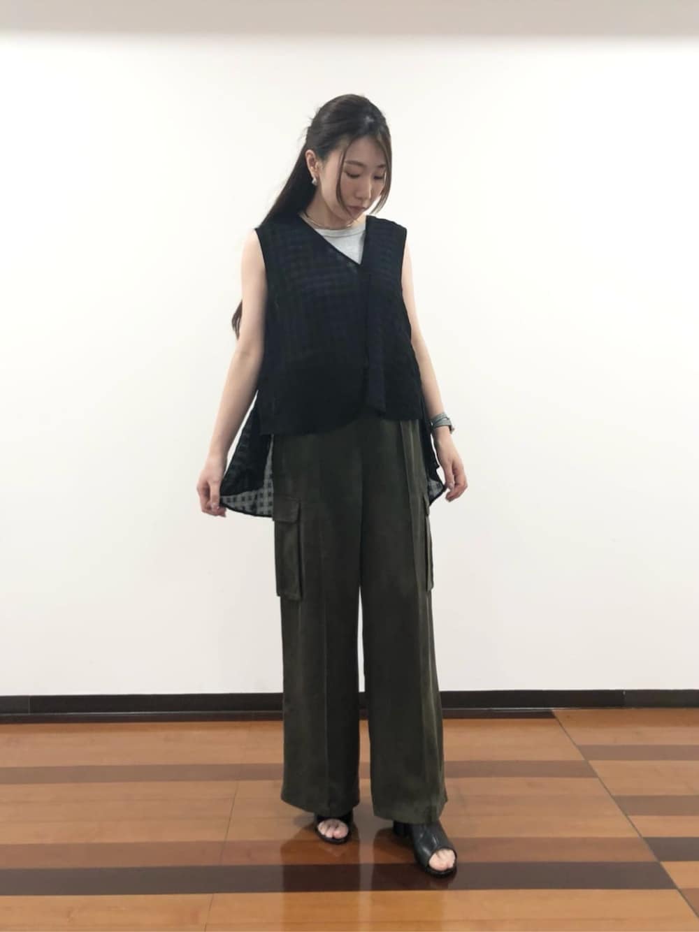 ◾️ カーゴパンツ 【サイズ感】ストレートワイドシルエットでワイドすぎず歩きやすいです。 【素材感・着心地】柔らかく清涼感のあるお素材で暑い夏でもまとわりつかずお召しいただけます。
