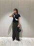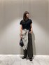 ◼︎カットソー コンパクトめなカットソーです。 裾にタックデザインがあることですっきり見えます。 さらっとした肌触りのコットン素材です。 ◼︎カーゴパンツ ウエストゴムでとても楽な着心地です。 サテンの生地とセンタープレスにより、カジュアルになりすぎないカーゴパンツです。 ストレートワイドシルエットで広がりすぎず足捌きも安心です。 ◼︎プリントスカーフ シルク100%でとても肌触りの良い大判スカーフです。 繊細な線で描いた絵画の様な柄です。 巻き方のアレンジによって印象が変わるスカーフです。 ◼︎ミニボストン 軽くてコンパクトなバッグですが、程よい収納力があり使いやすいです。 肩がけできるくらいの長めハンドルも便利なポイントです。 ◻︎スタイリングポイント 今年トレンドのスカーフをTシャツにまいて晩夏から秋を感じるられるコーディネートです。