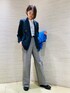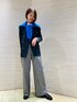 ◯ジャケット 着用サイズ9号 【サイズ感】 ・身頃も袖幅もニットが着れるゆとりがあります。 ・ヒップが隠れる着丈です。 【素材感】 ・ポリウレタンが入っているので、ストレッチがあり動きやすいです。 ◯Tシャツ 着用サイズ9号 【サイズ感】 ・ボックスシルエットの身頃です。 ・手首にかかる長袖です。 【素材感・着心地】 ・綿100%の柔らかい肌触りです。 ◯パンツ 着用サイズ9号 【サイズ感】 ・ウエストのボタンで調節ができます。 ・ウエストを絞るとベルトなしでも落ちず、丈は長めでお召しいただけます。 【素材感・着心地】 ・デニムの素材感にストライプのラインが入ってます。 ◯ローファー 着用サイズMサイズ(24.0cm) 【サイズ感】 ・幅はやや細めです。 ・踵に少しゆとりがあります。 【素材感・着心地】 ・柔らかい牛革なので、履き初めの硬さを感じず履くことができ、歩きやすいです。 ◯スタイリングポイント 紺ブレを主役とし、パンツでカジュアルさを出したコーディネートです。